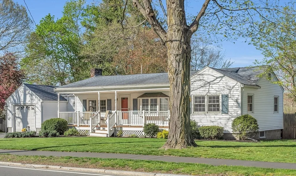 Well loved and cared for Ranch style home offering one level living! Enjoy warm summer nights on the farmers porch featuring dimmable recessed lights. All rooms have been freshly painted, newly finished hardwood floors and crown molding. The kitchen offers new appliances and newly painted grey cabinets and easy access to the laundry room. Just off the kitchen is the dining room with built-ins, just waiting for family gatherings along with the spacious living room with wall of windows overlooking private back yard. The family room has access to the farmers porch. Two bedrooms plus full bath complete the floor plan. One car garage with 4 parking spaces in driveway. Updated electrical throughout. Beautiful flowering tree and shrubs, large hibiscus flowers in season. B-Dry full perimeter basement system with battery back-up. Enjoy Lake Quannapowitt, dining, shopping and more in Wakefield Center and nearby Market Street!