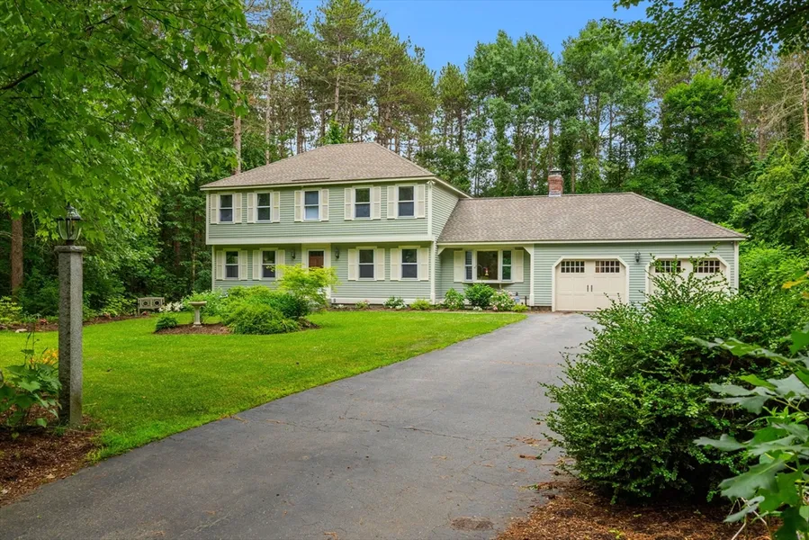 Set on over 2 acres in a lovely small neighborhood near Harrison S Ripley Forest, hiking trails and Baddacook Pond, this traditional colonial home offers both comfort and convenience. The well-maintained property features a bright eat-in kitchen with granite counters and stainless-steel appliances, opening to a family room with a fireplace and a dining room, both with hardwood flooring. The front-to-back living room, also with hardwood floors, is versatile and welcoming. Half bath with tile flooring, and a laundry area completes the first floor. The second floor includes four bedrooms and two full baths with granite countertops. The primary bedroom has an en-suite bathroom and shower. The partially finished lower level provides bonus rooms perfect for mixed-use, including a sound studio and unfinished storage space. The exterior shines with lovely blooms, a flat spacious driveway and a t...