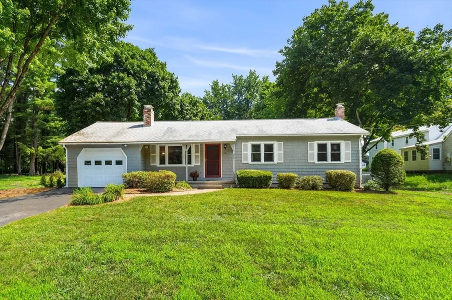 This ranch style home is located in the Timberlee Park neighborhood on the east side of Townsend near Pepperell, Groton and Shirley town lines. It features one level living with an attached garage and a large great room addition with a cathedral ceiling, wood laminate floor, gas stove and French doors leading to a patio. A new 3 bedroom septic system was just installed and the current owners have replaced the windows. Attic insulation was installed per Mass Save recommendations. There is a very large level backyard with newer attractive fencing. Wooded town land across the street offers privacy. There are mini split AC units and the the primary bedroom features a custom closet. The galley kitchen features a tile floor and granite countertops and a newer gas range. Perfect for a downsizer, fist time home buyer or as a condo alternative.