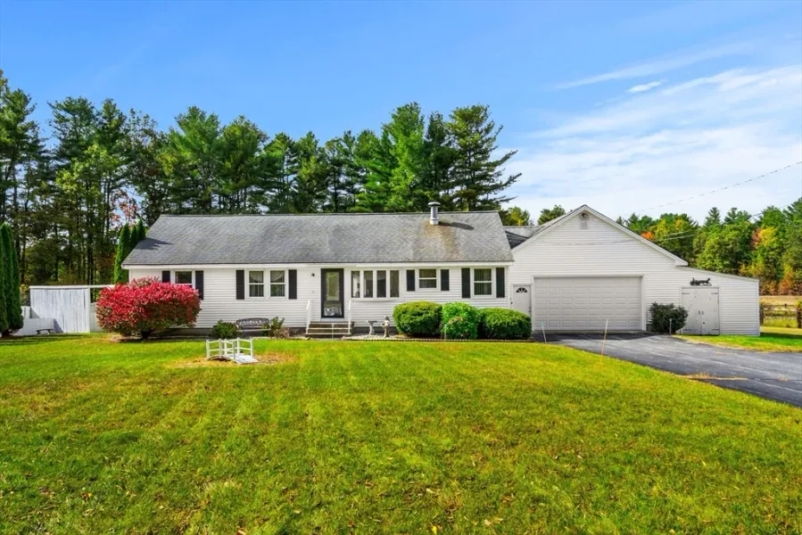 Discover this charming open-concept ranch home nestled on a picturesque 4-acre level lot. Bathed in natural light, the spacious floor plan features walls of windows that enhance its inviting ambiance. The kitchen boasts an impressive 8+ foot island and seamlessly flows into the dining and living areas, perfect for entertaining. This home includes three bedrooms, highlighted by a primary suite with a private bath and two closets, while two additional bedrooms share a second full bath. A versatile room, ideal for a sitting area or home office, features French doors for added privacy. Completing this level are a convenient half bath, laundry area and abundance of closets! The lower level offers a generous 44x23 bonus room and ample unfinished storage space. Outside, enjoy serene green spaces on a country road near the NH border, enhancing the property's appeal. With beautiful curb appeal an...