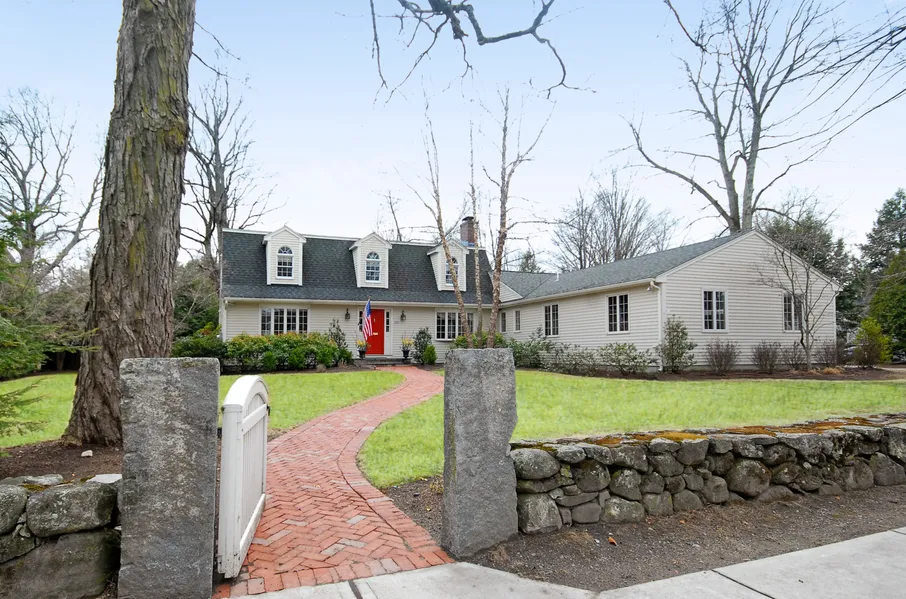 In the heart of Concord center, this elegant Gambrel Cape is perfectly sited on a beautiful fenced in lot with a picturesque patio, surrounded by charming New England stone walls! Enter the home through the stone gates and entertain in the charming living and dining rooms, highlighted by distinguished built ins, hardwood floors, and elegant woodwork. The first floor has a welcoming open floor plan with a gourmet kitchen, leading to a South facing sunroom with radiant heating and amazing three sided sunny exposure! Relax in the coveted 1st floor Primary suite with a large walk in closet, and an attached library and/or office flanked by floor to ceiling bookcases. Upstairs enjoy 3 spacious bedrooms, 2 full baths (one en-suite), enlarged closets, and cozy window seats! Play billiards in the lower level or enjoy the space as a game room! Easy access to Concord center, the train station, parks, & across the street from Concord Academy, make this offering in town living at its finest!!