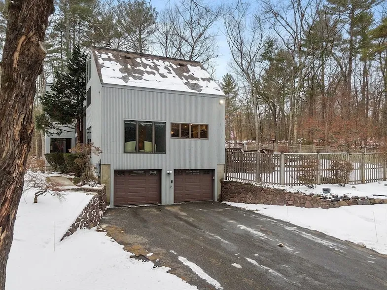 Stunning contemporary in an idyllic setting offers an exceptional lifestyle both indoors and out. Open-concept layout with expansive windows that frame spectacular views, filling rooms with natural light. The chef s kitchen, features high quality cabinetry, Bosch appliances, quartz countertops and slider to the deck. The main floor has a sitting room with a wood stove, living room with a striking floor-to-ceiling brick fireplace, a formal dining room, and study. A sunken family room adds a distinctive architectural touch and a three-season room that opens to a patio. The second floor offers four spacious bedrooms, with a primary en suite. One of the bedrooms features a unique loft space. An updated full bath serves additional bedrooms. A hall overlooking the living room provides breathtaking views through the large glass windows. Outdoors, a sparkling in-ground pool, with seating areas, ...