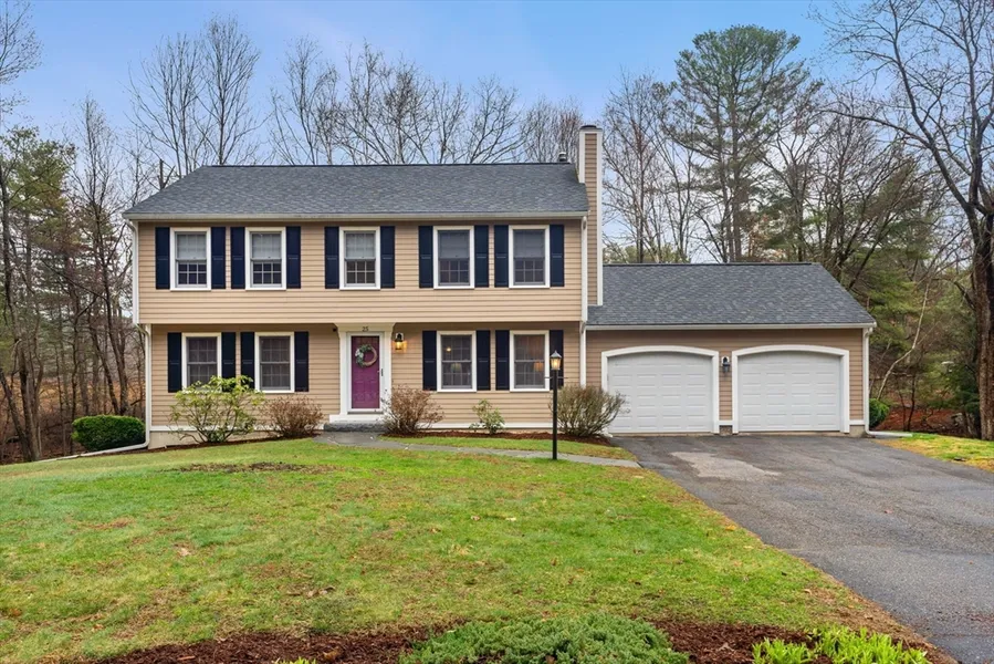 25 Gould Rd is a superb 3 bed, 2.5 bath Garrison set beautifully on a sprawling lot on a picturesque rural road. Designated by the town as a "scenic road," Gould Road is surrounded by nature & gorgeous in any season. Inside you will find a sun-filled living room, a fireplaced family room & an open concept dining room & kitchen. The sunny kitchen features cherry cabinets, a pantry & a breakfast bar. Laundry & 1/2 bath on 1st floor as well. Upstairs are 3 bedrooms, all a great size, including a primary w/walk-in closet & private 3/4 bath. There is an additional shared full bath upstairs. Don't miss the fantastic bonus room in the basement, perfect for a home office and/or rec room. The basement is bright w/ full windows & walks out to the large backyard w/ patio, deck, storage shed & fenced area for pets. Relax on the deck, observing the serene surroundings. 2 car garage has ample storage space. Just steps to conservation land w/ walking trails, as well as Good Pickin' Farm. A real gem!