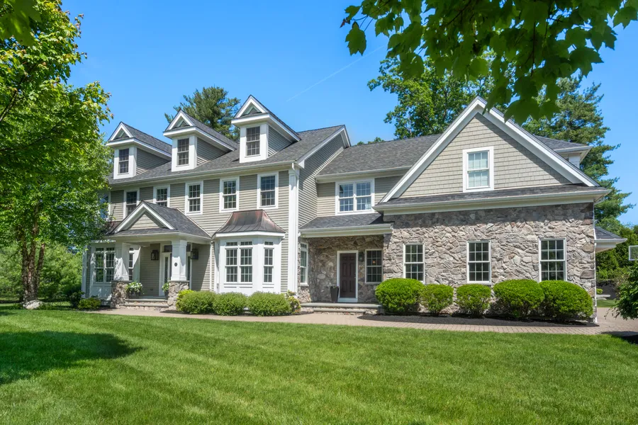 Welcome to Covered Bridge Lane - a rare offering in one of Wayland's prettiest cul-de-sac neighborhoods. This better-than-new, breathtaking stone-front colonial is ideally situated just moments from the scenic trails of Hamlen Woods and Mainstone Farm, while offering easy access to major highways for a seamless commute. Wow guests in the grand two-story foyer, accentuated by high ceilings, a dramatic split staircase and refined architectural details. Stunning hardwood floors and richly detailed bay windows, wainscotting and coffered ceilings elevate every room with timeless style. Enjoy the seamless flow into the sun-drenched family room, the ideal space for everyday living and entertaining, complete with vaulted ceiling, a wall of custom built-ins and a cozy gas fireplace. The state of the art kitchen, outfitted with top-tier appliances including a Wolf range, double wall ovens, built-in microwave, paneled dishwasher, marble countertops, and sleek custom cabinetry makes hosting book club, holidays and dinner parties a breeze. Sliders provide access to the flat patio and pristine backyard kept lush and green by an extensive irrigation system. The generous home office is lined with abundant built-in cabinetry and display spaces. Upstairs, discover two bedrooms with custom closet systems that share a Jack-and-Jill bathroom plus a private guest bedroom with ensuite bath. A dedicated kids’ homework room or second office with built-in desks and storage provides a quiet escape every busy family needs. The primary suite is a luxurious retreat boasting its own fireplace, an enormous custom walk-in closet and spa-like marble bathroom with a freestanding soaking tub, an oversized walk-in shower, and a double vanity with elegant finishes. An oversized laundry room with cabinetry and work spaces complete the second floor. The finished lower level offers versatile space ideal for recreation or guests, complete with a full bath, home gym and abundant storage perfect for sports gear, seasonal items, or household overflow. Covered Bridge is a picture-perfect family neighborhood - peaceful, refined and ideally located within minutes to Wayland’s top-rated schools!