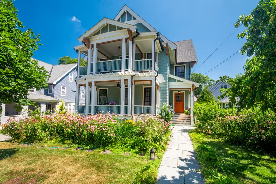 This stunning Victorian home, in the style of Painted Ladies with soaring ceilings & hardwood floors, is in a prime neighborhood just moments from Winchester Center, the commuter rail, Shannon Beach, & a short ride to the Airport & downtown Boston. The house lives as a harmonious single family with an inlaw apartment on the 1st floor. It has 6 beds & 4 baths, over 4,385 SF of living area on 3 floors. Features include 2 covered porches, a renovated garage, butler’s pantries, built-in cabinetry, new interior & exterior paint, & ample outdoor space. Upgrades include high-velocity A/C throughout the home, 2 new gas water heaters, a restored chimney, a gas F/P, an oversized custom walk-in closet, & a fenced-in side yard. Professionally landscaped, mature fruit trees, flower & vegetable gardens & two extra cobblestone parking spots complete the outdoor space. A full, unfinished walkout basement with a high ceiling has endless possibilities. Don't miss this rare opportunity in Winchester!
