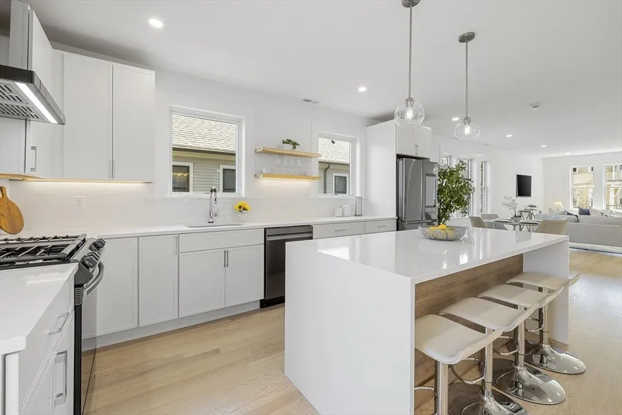 Luxurious & gut renovated 3bed 3bath duplex penthouse in N Cambridge. Bright & open floor plan home, w/ high ceilings & oak floors throughout, is flooded w/ natural light. Stunning kitchen, w/ direct access to your private deck, has custom cabinets, quartz counters & waterfall island, Samsung Black ss appliances w/ Family Hub Display, 5 burner gas stove w/ griddle, vent hood & pot filler, are a cook's dream. Open plan main floor w/ LR, DR, sunny sitting room, as well as 2 beds & 2 full baths give you space & flexibility on one floor. Spacious top floor primary suite is your private oasis w/ walk-in closet, 2nd sitting room/office/flex space & spa-like ensuite bath w/ double vanity, rain shower & relaxing soaking tub. Large laundry/utility room, 2 car driveway parking & shared back yard give additional convenience. Centrally located by the Somerville Community Path this home gives you eas...