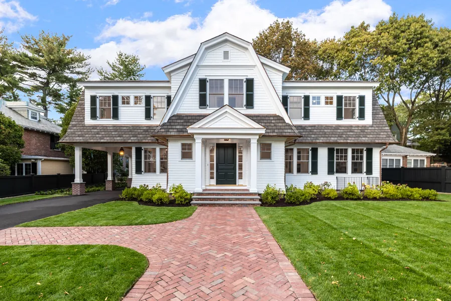 Set along Commonwealth Avenue’s storied Carriage Lane, this newly constructed five-bedroom, five-and-a-half-bath property will satisfy even the most discerning buyer. Built by Arone Brothers, this home exemplifies exceptional craftsmanship and timeless New England design. Every detail reflects the builder’s reputation for quality, from the copper gutters and flashing to the cedar shake siding and custom exterior shutters. Thoughtful architectural elements include fir and mahogany wood accents, Versatex trim materials and a 50-year roof designed for lasting durability. Inside, wide-plank white oak floors, detailed millwork and curated lighting give the home a distinctly custom, one-of-a-kind feel.