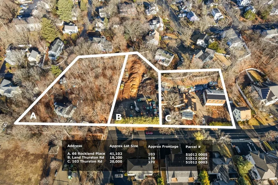 79,302 sq ft in PRIME Newton Upper Falls location. The three parcels are improved with two separate houses at 103 Thurston Road and 66 Rockland Place along with a large barn at 103 Thurston Rd.