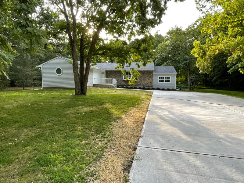3BR,2BA L-shaped ranch home situated on over an acre of land! New roof and new long 2 car wide concrete driveway,front porch with stone facade surround,master bedroom has oversized master bath with dual sinks, and a walk-in closet! Eat in kitchen with new appliances,bonus 3 season room in rear and nice family room/den situated at front of home. Plenty of closet space throughout. Full unfinished basement! Inground pool is as-is (with some repairs it has the potential of being an amazing accent to your yard).