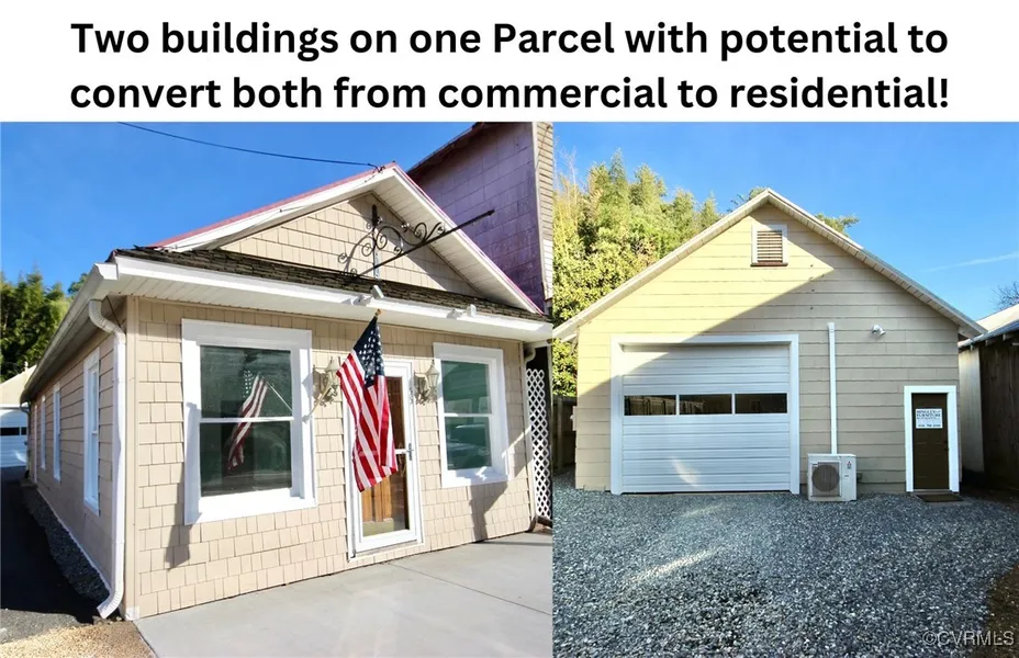 Located in the heart of Urbanna's Historic district, this well-maintained commercial property offers incredible potential for business or residential conversion. Zoned GB and featuring two renovated buildings on one parcel, this property provides off-street parking and a prime location within walking distance to the marina, restaurants, and shopping. The front building, approximately 904 square feet, boasts excellent road frontage on Cross Street, across from the pharmacy. Completely renovated in 2005 down to the studs, updates include modernized plumbing, electrical, and vinyl siding, with added insulation and new sheetrock for improved efficiency. More recent improvements include a new cement subfloor with luxury vinyl plank flooring, fresh paint, outdoor heat pump and updated lighting. The metal roof has been freshly painted, and the building retains its historic charm with original windows. A half bath is already in place, with room to expand it into a full bath, making this space ideal for residential conversion. The back building, fully renovated in 2011, also underwent a complete transformation down to the studs, with new insulation, sheetrock, vinyl windows, and a garage door. It features an office area with a half bath, a ductless heat pump for energy-efficient heating and cooling, and a recently painted interior and exterior. The aluminum roof ensures durability and low maintenance. This well-cared-for property is move-in ready and offers endless possibilities for its new owners. Owner financing required, Although no known defects the property is Sold AS-IS. Don't miss out on this unique opportunity—contact me today for more details or to schedule a showing!