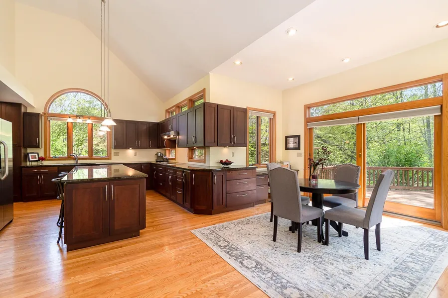 SERENE AND TRANQUIL SETTING LOCATED ON A COURT IN ONE OF MIDLANDS MOST DESIRABLE PREMIERE NEIGHBORHOODS! Situated on over 1/2 acre lot that backs up to natural woods of the Tennis Center, this family home offers over 4210 sqft of total living space with 5 bedrooms & 4 full baths. Entertaining or just family time, this home is perfect for either with gleaming wood floors, brand new carpet, architecturally designed ceilings, oversized windows & skylights that allow natural light to beam in every room. Huge Updated Gourmet kitchen boasts Vaulted Ceiling, Granite, island, stainless steel appliances including wall oven, microwave/convection & warming drawer which flows into the Great Room with vaulted ceiling & fireplace. Main floor also boasts office, dining room, updated full bath & laundry. Second floor offers 4 bedrooms including a Primary Suite with bath that features jetted tub & walk-in shower. Updated finished lower level offers tile floors, Kitchenette, family room with fireplace, 4 egress windows, 5th bedroom & full bath. A special surprise, 2 hidden bonus rooms one on the 3rd floor & one off of a bedroom, great playrooms. With sliders off the kitchen & great room this home is perfect for entertaining inside and out on the 3 decks overlooking the very private backyard. Both furnaces new in 2020. A must see, call for your private showing.