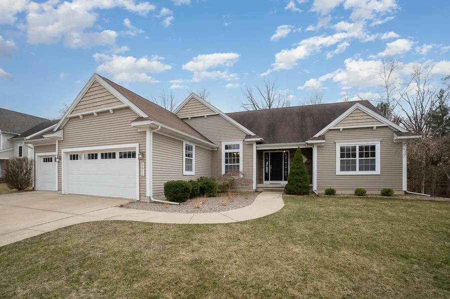 Welcome to your dream home nestled in the heart of a tranquil neighborhood, offering the perfect blend of comfort, style, and convenience. This Ranch home boasts 2500 sq ft of living space with 4 bedrooms and 3 full bathrooms. The inviting curb appeal with lush landscaping and a welcoming front porch, sets the stage for the warm ambiance found within. As you step inside, you'll be greeted by 9' ceilings, gleaming wood floors and an abundance of natural light flowing through the spacious open floor plan, creating an inviting atmosphere for both relaxation and entertaining. The Great Room features a stone fireplace, perfect for gathering with loved ones on chilly evenings, while the adjacent kitchen is a chef's delight, equipped with granite counters, stainless steel appliances, peninsula with seating and plenty of cabinet space for storage. The dining area features 9' sliders to the deck perfect for hosting memorable dinners inside or out. The flex room off the foyer offers wood floors, tray ceiling and provides versatility, perfect for use as a formal dining room or home office. Retreat to the Primary suite, complete with a serene ambiance, walk-in closet, and a large ensuite bathroom featuring dual sinks and walk-in glass-enclosed shower. Additional 2 generously sized bedrooms and family bath are located on the other side of the home, offering comfort and privacy for family members or guests. A mudroom and laundry area conveniently connect to the 3-car garage. The full walkout lower level expands the living space with a huge family room with sliders leading to the private tree lined backyard, 4th bedroom, and full bath. The unfinished area offers another egress window which presents the opportunity for a 5th bedroom or private office, along with abundant storage. Conveniently located near top-rated schools, shopping, dining, entertainment and walking distance to the Rail Trail, this home offers the perfect balance of tranquility and accessibility. Don't miss your opportunity to make this exquisite residence your own!