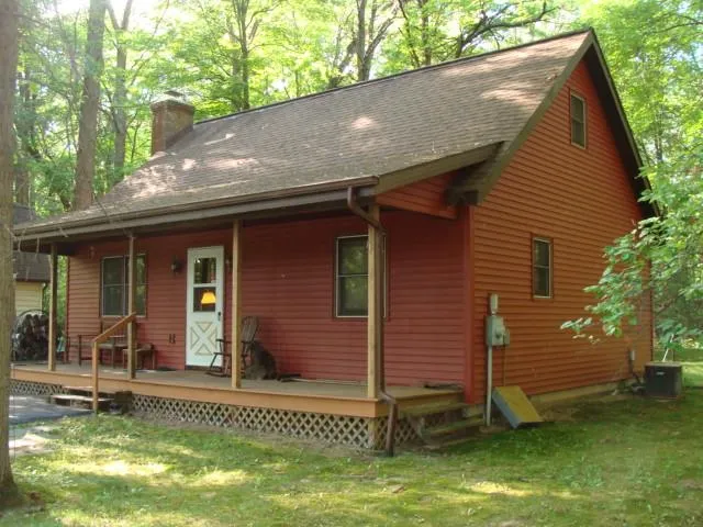 Hunting Land For Sale in Midland County, Hunting Land for Sale in Michigan, Country Home For Sale. This 80 acre parcel is completely wooded and consists of mostly mature oak trees that have timber value. Prairie creek runs along the Northern side. The cozy home sits off the road at the end of a long freshly seal coated blacktop driveway. There is a very clean 33'x50' pole barn and a 21'x30' garage/shop. Above the garage is a loft that has been used for extra guests to sleep. The bucks on the wall are proof of the quality of animals it has to offer. There is a very well kept apple orchard out front. This property is located within 20 minutes of downtown Midland and within 25 minutes of Mt.Pleasant and the Soaring Eagle Casino. ***All information is not warranted or guaranteed and aerial photos area a property layout and not deemed a survey