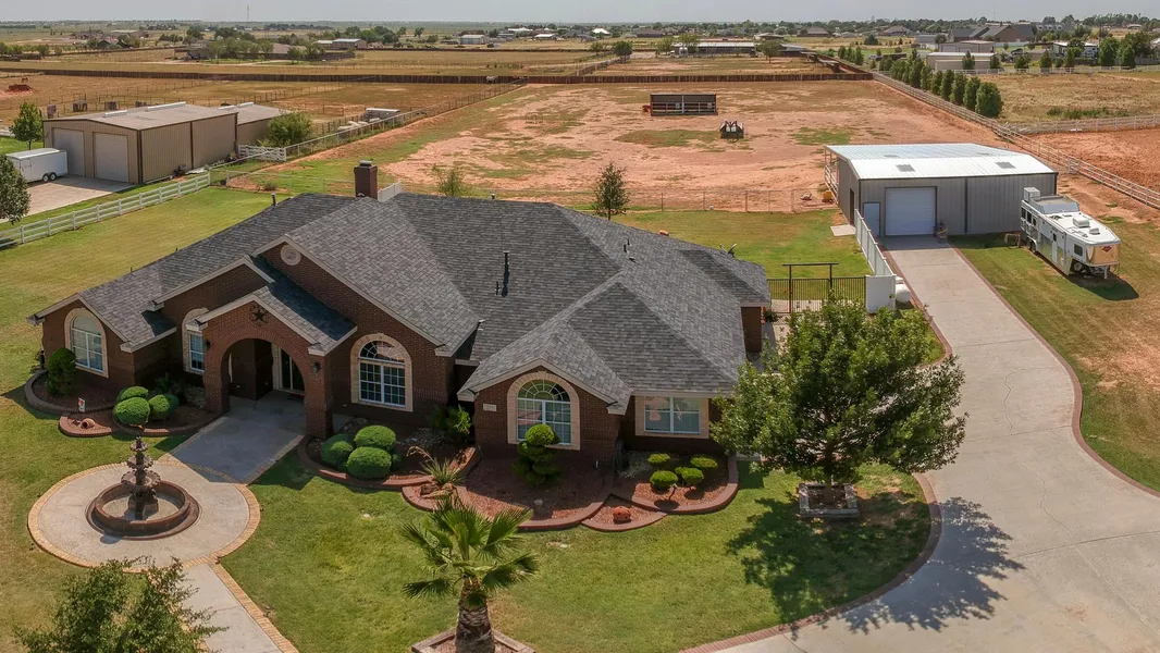 PERFECT HORSE LOVERS PROPERTY LOCATED IN THE COVETED GREENWOOD ISD MINUTES SOUTH OF MIDLAND, TX! BEAUTIFUL CUSTOM HOME ON 2.86 ACRES BUILT IN 2007 FEATURING 3 BEDS, 2.5 BATHS, 2-CAR ATTACHED GARAGE WITH A HUGE BONUS ROOM PERFECT FOR A SECOND LIVING AREA OR OFFICE! EXQUISITE DETAILS FOR THIS HOME: 2 LIVING AREAS, 3 DINING AREAS WITH VAULTED OR HIGH CEILINGS, GORGEOUS CUSTOM FIREPLACE WITH MARBLE PILLARS & TILE. BONUS ROOM CAN BE USED AS AN OFFICE OR SECOND LIVING AREA FEATURES A WET BAR WITH WINE FRIDGE, SINK & WINE RACK AS WELL AS FRENCH DOORS LEADING TO BACK PATIO. SEQUESTERED MASTER SUITE WITH INSET LIGHTING, CROWN MOLDING AS WELL AS FRENCH DOORS OPENING TO PATIO. MASTER BATH SUITE HAS 2 WALK-IN CLOSETS, 2 GRANITE VANITIES WITH TONS OF COUNTER SPACE AND THE MOST EYE-CATCHING FEATURE IS THE OVERSIZED JETTED TUB SURROUNDED BY BEAUTIFUL MARBLE TILE & PILLARS WITH A DUAL ENTRY WALK-THRU SHOWER WITH MULTIPLE JETS. GOURMET KITCHEN FEATURES STAINLESS APPLIANCES INCLUDING A WOLF OVEN, OVERSIZED REFRIGERATOR, ISLAND WITH ELECTRIC COOKTOP, GRANITE COUNTERS, LOTS OF CUSTOM CABINETS & WALK-IN PANTRY! LARGE COVERED & OPEN PORCH MAKE THE BACK YARD PERFECT FOR COOKOUTS AND ENTERTAINING ESPECIALLY WITH THE MOTORIZED PATIO SHADES BLOCKING THE WEST SUN IN THE EVENINGS! XERISCAPE & SPECTACULAR LANDSCAPING IN THE FRONT WITH A LARGE CIRCLE DRIVE AND GREEN GRASS SURROUNDING THE HOME THANKS TO THE AUTOMATIC SPRINKLER SYSTEM! 30X40 METAL SHOP FEATURING 2 GARAGE BAYS WITH 4-STALL SHED ROW AND FEEDING ALLEY ATTACHED TO THE WEST SIDE OF THE SHOP. AUTOMATIC WATERING TROUGHS INCLUDED. PIPE PENS LEAD TO CLEARED FENCED AREA FOR HORSES TO RUN WITH AN ADDITIONAL 2 PENS. EASY ACCESS THRU THE ELECTRONIC SIDE GATE! PLENTY OF ROOM & PRIVACY FOR RAISING A FAMILY AND ENJOYING A LITTLE COUNTRY LIFE!