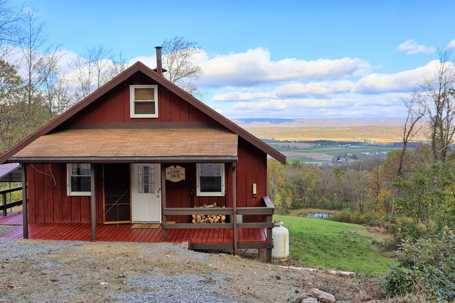 A nice cabin on 11 acres with awesome views! The cabin features 2 large bedrooms, kitchen, dining area, & a large fireplace. Has a cozy wood stove, and a full bathroom. There is a porch and a large deck overlooking the pond and the valley below. Cabin has a generator hook-up for electric and has a septic system. Very secluded & private with all modern conveniences! Has a pond and is located not far from PA State game lands.