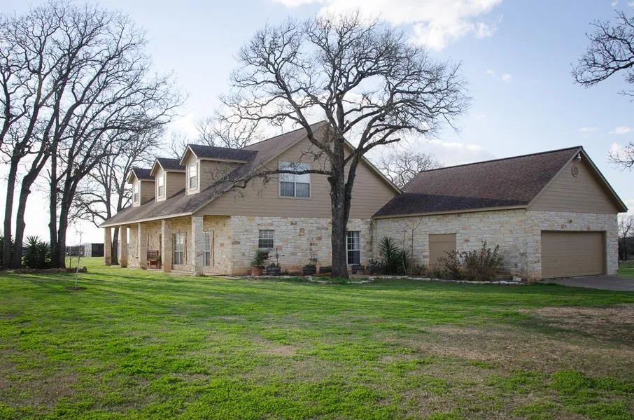 Stalls with a feed and Tack Room. The Barn has a 2 roll down doors. The land is highly improved and surrounds this "Stunning" 2 story rock