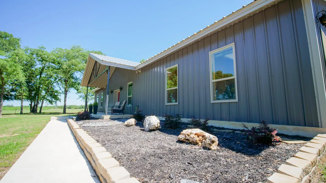 Nice barndominium on 12.081 acres! This property truly has something for everyone. A 2018-built barndominum boasts 2,125 square feet and leaves nothing to want for. Three bedrooms and two full baths gives plenty of room for the whole family. The interior features a ton of upgrades and custom work from tile flooring, oversized sliding glass French doors, new appliances, large mudroom and utility room, and an awesome master suite and bathroom. The living area has tall vaulted ceilings, with a great view to the back yard. The kitchen has a large bar, tons of storage and stainless steel electric appliances that are top of the line and very inviting for the person who loves to cook. The home has two bedrooms in addition to the master, with one set up as a home office currently. Both bathrooms have glass vessel sinks, while the master has two closets, large tub, and nice tile shower. The utility rom has an extra sink, storage, and counter space. The exterior is highlighted by large front and rear porches, unique front entrance, and spacious 2-car attached garage. In the rear of the home, there is a nice extra slab area that has a grill and hot tub that makes for the perfect place to relax. Scattered post oaks surround the house and give plenty of shade on those hot summer days, and privacy from the road. This lot is truly one of the best lots in the area.
