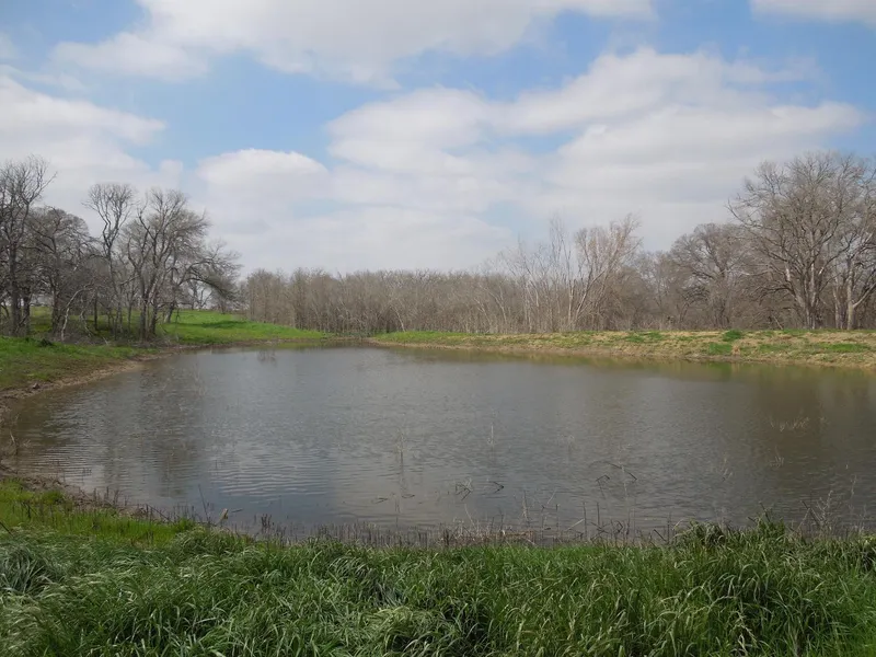 Gently sloping hilltop with county road frontage on two sides and flowing Briary Creek on the NorthEast boundary. Mostly open with scattered trees, several ponds, and good perimeter fencing in place.
