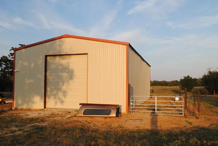The 32'x60' all metal building, was built is 2012. It offers a 956 Square foot, two story, three bedroom, 2 Bathroom barndomenium style home, with additional garage/shop area. This home offers many options to add on additional rooms, or use it to live in while building your dream home. This home can sleep six comfortably. Upstairs can be fitted for kitchen if desired. Also could serve as a rental property. All tile floors in place. Underground power serves the home.