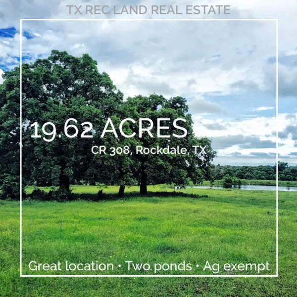 UNDER CONTRACT! PRICE REDUCED! Great property right outside of town! This 19.62 acre property offers a lot of potential for a homesite or possible commercial endeavors. This property is situated just west of Rockdale on CR 308 approximately 1/2 mile off of Highway 79. The Rockdale intermediate school borders this property to the south.