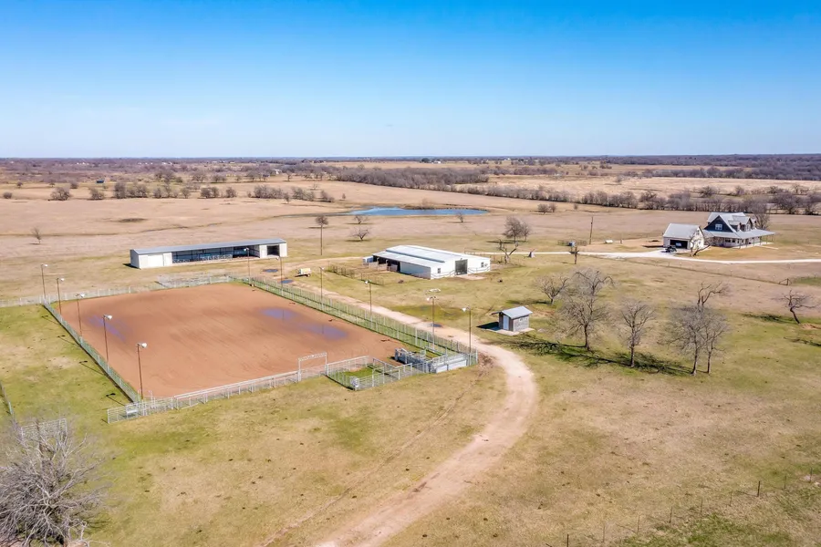 The property was designed to be extremely efficient with the home, barn and arena all centrally located. The property's equine offerings are unique and efficient making them a perfect turnkey opportunity for any professional cowboy, weekend warrior, or hobby horse enthusiast. The metal barn sits on a commercial grade concrete slab and features (8) 10x12 stalls, all with water, and exterior pipe runs. The front of the barn is fully insulated with a large cedar bar top making it the perfect place to entertain! The arena is pipe fenced, fully lit, and is approximately 120x220 with a manual roping chute, catch pen, 1 lane on the eastern side of the arena, and 1 trap on the western side of the arena.