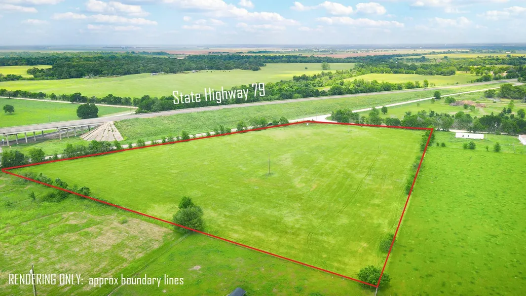 Central to San Antonio, Houston and Dallas and less than 80 miles to both Austin and Waco, this +/- 7.9 acres is highly visible from State Hwy 79. Electric lines on site, perimeter fenced with current AG valuation in place, and hard corner location at CR353 and 352. This location offers versatility with no restrictions, hold ability with hay lease and Ag exemption, and easy access for both east and west bound traffic. A great place for both business and home. Seller Financing will be considered with acceptable terms.