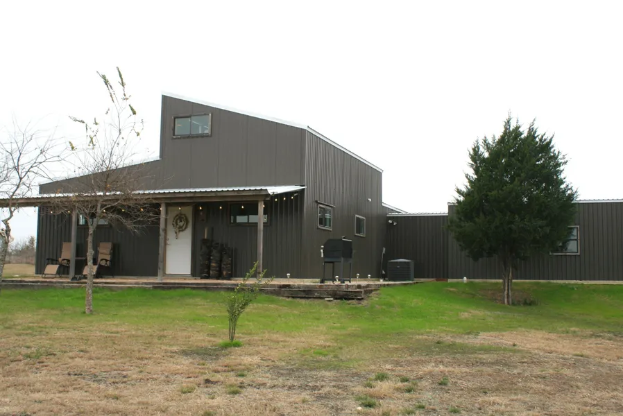 Views that can't be matched, park-like setting and complete privacy! This one-year-old modern style barndominium is set at the summit of 20 acres only 10 min from Cameron/25 min from Temple. 3 bedrooms and 2 baths on main level with a bonus bedroom/entertainment room on second floor. So much charm built into home with stained wood counters, beautiful accent walls, built-in wall sconces, wood bamboo flooring, and amazing views from every window. Master bedroom is 23 X14 and includes a sitting area, walk in closet with built-ins and a nook for small office with built in desk. Huge utility room leads out to 765 sq ft shop. Property is fenced on 3 sides and includes a picturesque pond with floating dock.