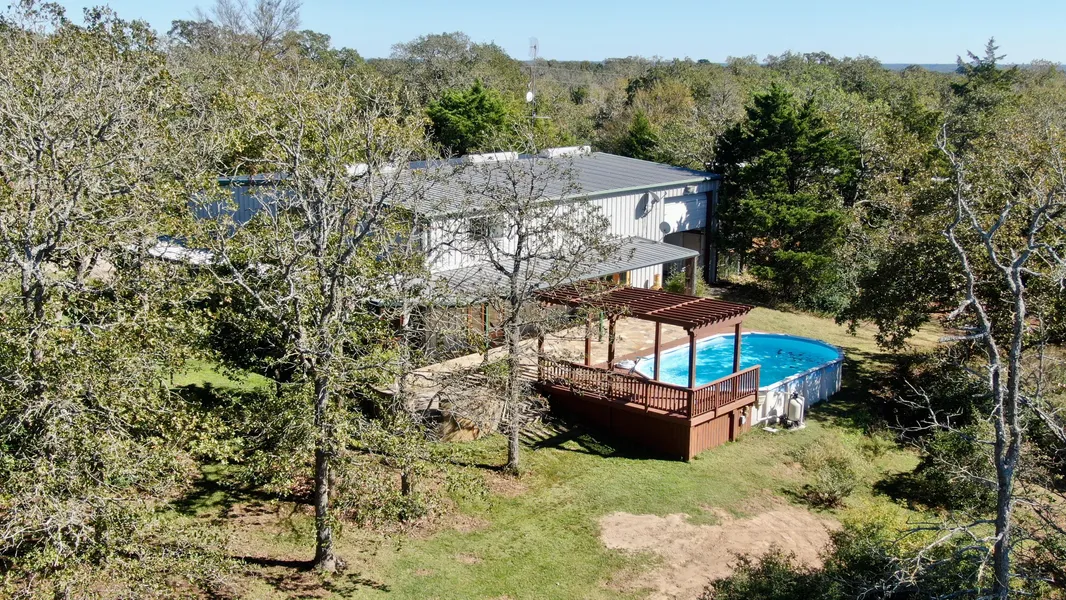 Delightful two story barndominium in the coveted 22 Hills neighborhood of Milam county that offers great views and rolling landscapes. At almost 20 acres and with elevation changes of over 80 ft this rolling property is much more then just an amazing view. This four bedroom custom home has room for it all with 3016 sq Ft heated/cooled that includes a large studio space full of natural light and additional 610 sq ft shop space, insulated, with access from large overhead doors. Built with entertainment in mind this home features a large 1000 sq ft stone patio with fire circle seating and beautiful sunsets over the above ground pool and deck. Enjoy your company with the large open concept that includes the dining room, living room and recently updated kitchen. New updates include new quartz countertops in the kitchen and a new master bath walk in shower. Upstair...