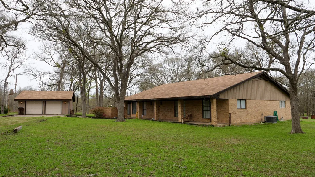 Looking off the back porch, you're greeted with large trees and wet-weather creek that leads to a 1/3 acre pond when full. This tract is about 1/2 wooded and 1/2 open with native grasses. There is ample wildlife in the area---deer, hogs, predators, and occasional turkey passes through this property. The rear of the property would be great for hunting, gardening, ATV's or any other kind of recreation. Fencing is in place on three sides of the property, and if completed or cross-fenced, it would be great for cattle, horses, etc. Additional storage building/garage towards the rear of the property as well. No restrictions in place. Southwest Milam Water meter, power and septic all are in place!