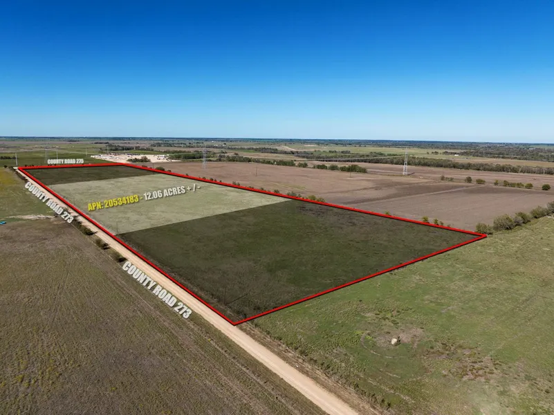 12.06 acres of open, cleared land with 822 feet of frontage along County Road 273, a gravel, county-maintained road. Land is mostly level and sits at approx. 340-350' elevation. Property features perimeter fencing along 2 sides, overhead electric lines along the road and a 2" waterline nearby down CR 275. Agriculture valuation in place for low taxes. No restrictions and no known leases. Only 11 miles to Rosebud, 17 miles to Cameron, 36 miles to Temple, 43 miles to Waco, and 47 miles to Bryan-College Station. Milam county is not mapped with FEMA, but property so floodplain unknown, but property is 1/2 mile north of the closest creeks. There is an overhead transmission line running diagonal across the northeast corner of the property.