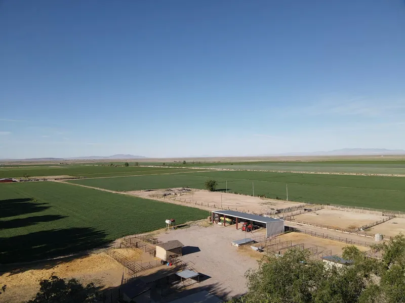 PRICE REDUCED!! This farm is perfect for either a first-time farmer/rancher or a huge cattle and horse operation. The useability of this feedlot and farm are perfectly planned out with many uses. The outbuildings give this feedlot a sense of organization. The many custom welded corrals make the farm perfect for holding, calving, feeding, and training your livestock. This farm located northwest of Delta has a sunset view to the west over the many other cultivated fields of alfalfa and wheat in the distance. The acres of land and irrigated water rights give the perfect touch to independently run your own operation. The country farmhouse fits the style for the western ranch with 5 bedrooms, 2 bathrooms, living room, mudroom, sunroom, den, full kitchen, and a dining room. The handcrafted cast iron wood burning stove is set comfortably in the basement to regulate the heat throughout the house. The basement den features custom gun racks on each side of the fireplace. The irrigated front yard grass is covered with massive trees for a wealth of shade throughout the day. The 2-car covered garage and extra paved parking spots for trailers, boats, or other vehicles make it nice to accommodate your needs. Make this farm a dream come true for your western lifestyle, and start your farming and ranching adventure today.