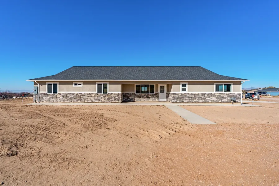 Buy it for the views! Single level living in this brand new ranch style home in Oak City Canyon. Large 1.13 acre lot with the home perfectly positioned to enjoy the beautiful mountain and valley views. Animals allowed, so finish the yard to fit your needs with additional outbuildings, landscaping or places for livestock. Open floorplan has large bedrooms, walk-in pantry, bonus storage room, 2nd living room, primary suite, and a finished garage.