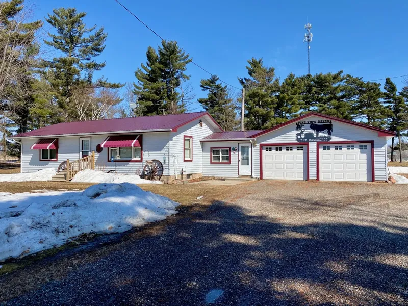 A peaceful homestead with towering pines situated on 25 acres. The home features many essential upgrades including steel siding and roof, flooring, bathroom and washer and dryer. The home also offers great natural light, hardwood flooring and an attached 2 car garage. In addition there is a 4-stall, 83x30 garage with a 30x23 portion that is insulated and stubbed in for and in-floor heating system, 3 of the doors in this garage are newly upgraded, the other is a sliding door. There are 3 sheds on the property, 12x12, 12x16 and a large 23x50 with a 16x12 calving barn attached. Needless to say there is plenty of room for all of your hobby and storage needs. The 25 acres is mostly pasture with incredible white pines that give such a grand unique feel to the property. Make this your home.