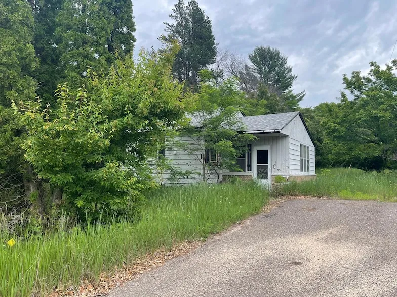 5 acres just outside of City limits. The house is a tear down. Opportunity awaits on this wooded property. Beautiful building site with walkout potential.