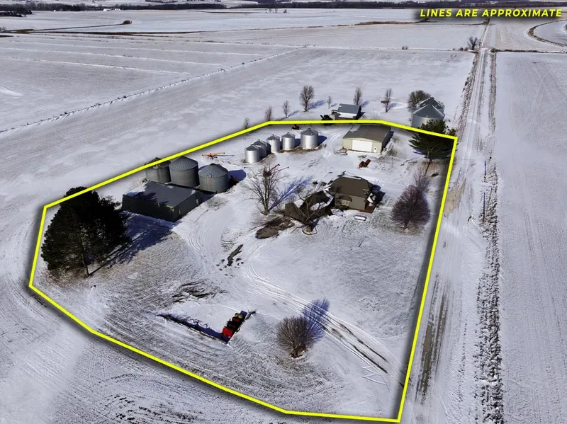 Farm operators will appreciate the extensive onsite grain storage, featuring a total of 44,000 + bushels of combined capacity.