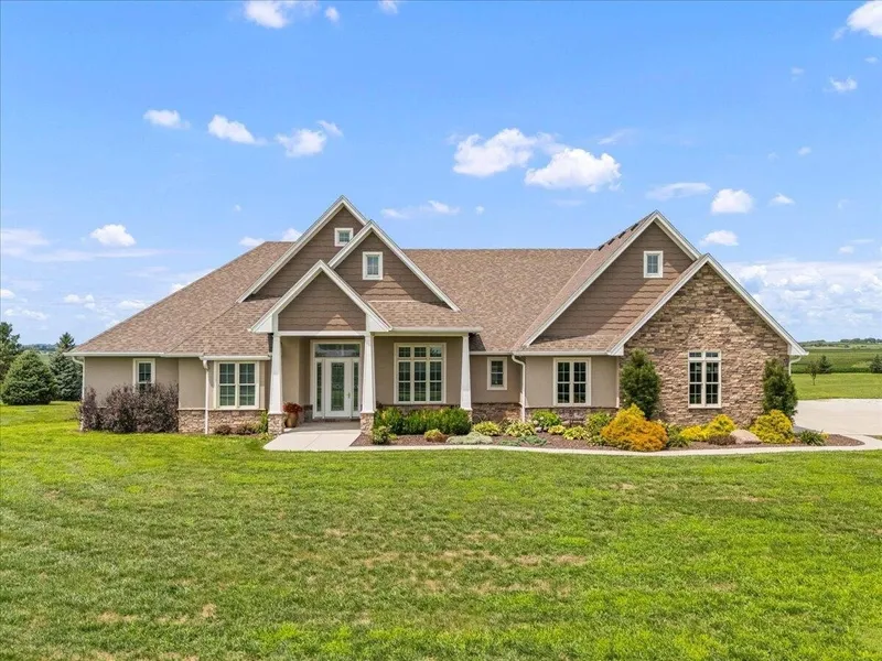 Welcome to your dream retreat perfectly positioned on over 5 scenic acres just 22mi from Offutt AFB & about 30 min from the Omaha Metro. This executive ranch offers the ideal blend of luxury, comfort, & space. Step inside to find a sprawling main floor with a grand entryway, formal dining room, private office, wet bar, & a stunning chef's kitchen complete with an oversized industrial fridge & show-stopping island. The finished walkout basement features a 2nd kitchen & bar, private sauna, 2nd laundry room, & ample space for entertaining or relaxing. Step outside to your covered deck with built-in grills, fridge, sink, & outdoor fireplace, perfect for year-round enjoyment. Overlooking the heated in-ground pool & spacious patio, this setup is made for gatherings or peaceful evenings.
