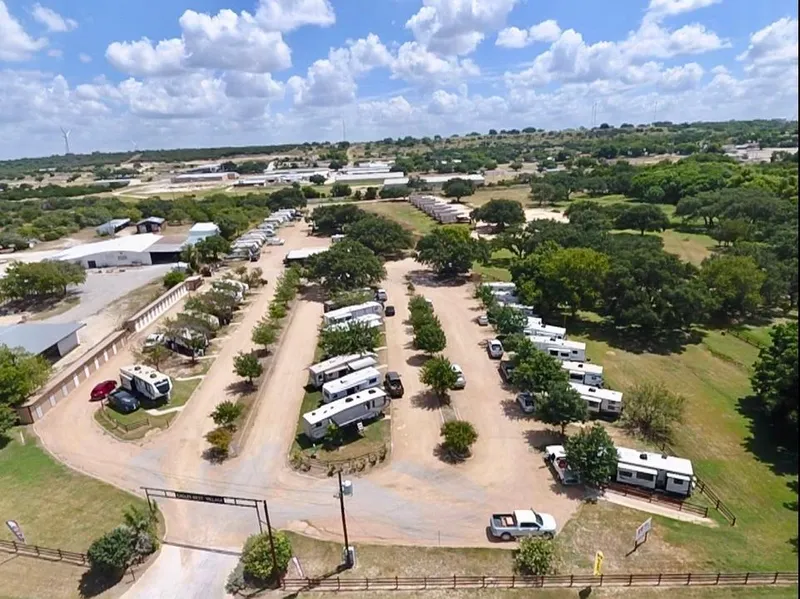 Spectacular, income producing property that offers 57 RV spots, 8 cabins, community center and 24 storage units. Beautiful, well maintained park is shaded with a variety of trees including huge live oaks, offers a pond and small creek. Plenty of room for kids and pets to run and play! City of Goldthwaite provides water, sewer to the entire park as well as electric to the front half of the park with the community center and back of the park falling into Hamilton County Electric Coop service area. All RV sites and cabins have individual electric meters. Both 50 and 30 amp RV hookups are available. The 8 cabins are all 1 bedroom, with living area, kitchen and bath. Each cabin has a private deck and covered parking. The spacious Community Center, located at the heart of Eagles Nest Village, offers office space, full kitchen, living & dining area, showering facility, and a coin-operated laundromat. A covered porch stretches the entire length of the Center and includes a large wooden deck which overlooks the ponds and waterfall. For the long term renter needing additional storage units are available. There are eighteen 4' x 6' units and six 6' x 10' units.