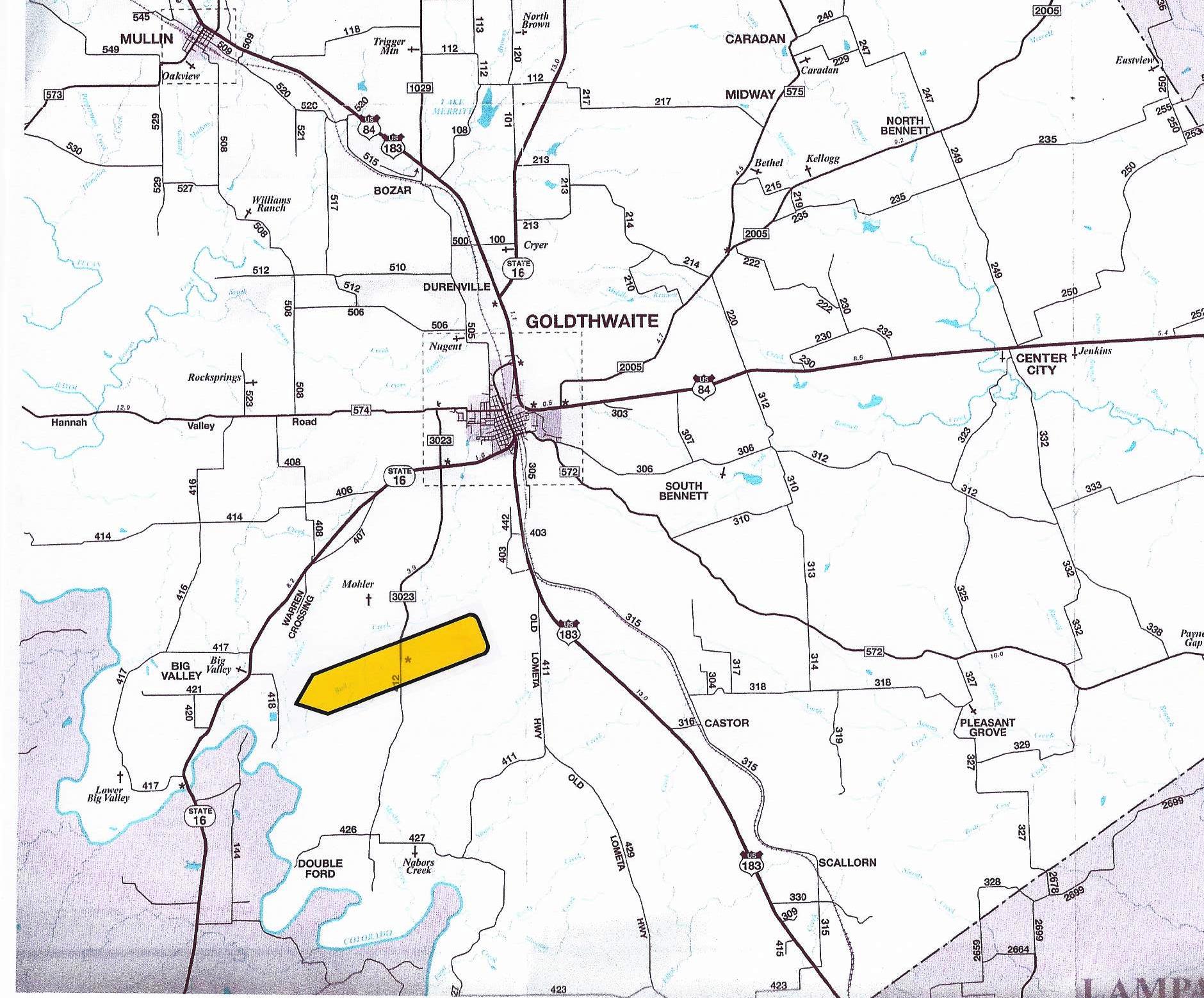 Research Parcel InformationFrom Goldthwaite take 16 S for about 8 miles to a left on CR 418. Property will be about 2 miles on left. Please do not enter without listing agent. Thanks!!