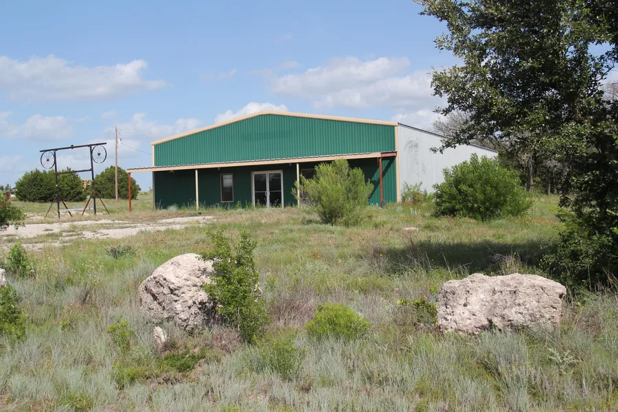 PRICE DROPPED BY ALMOST $100,000!! BET YOU CAN'T FIND ANOTHER SIMILAR PROPERTY IN THIS AREA FOR THIS PRICE!! Well-located property suitable for multiple uses. The property has paved road frontage on two sides: State Hwy 16 on the west and Mills CR 407 on the east and lays across CR 407 from the Goldthwaite Municipal Golf Course. An approximately 5,000 sf (according to CAD) metal building on a concrete slab is situated near the northwest corner of the property. It was built to house an antique furniture store business with ample front and side parking, a covered porch running the length of the front of the building with windows and front walk-in door. The building is plumbed with a toilet located off a small office area, roll-up doors, sprayed on insulation, and extensive overhead lighting. Would be good for another similar business, a small factory or workshop, or could be converted to a barndominium--a name given to metal buildings that are finished out inside as a residence for a low-maintenance, economical life style. The land is gently sloping with oak trees and other native trees. This property would be a great place to build a country home giving you a choice of locations and entrances. Clean and pretty and located just far enough out to be called country but close enough for the conveniences of town to be handy. Think about the possibilities and call our office without delay!