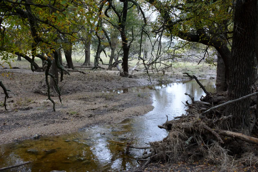 96.29 acres has Washboard creek entering on south side of property and is lined with towering pecans, elms and oak trees. Don't let the aerial fool you - there is more tree cover than the aerial indicates. There is one stock tank and currently creek is still running. Good parameter fencing. Ag Exempt. Older farmhouse that would work for a deer camp or weekend place. Non functioning windmill well near home and there is an old hand dug well by the creek. Property is rolling with beautiful views to the west. Deer, turkey and even quail have been seen on this place. Perfect size to hunt, run some livestock or just sit back and enjoy God's country.