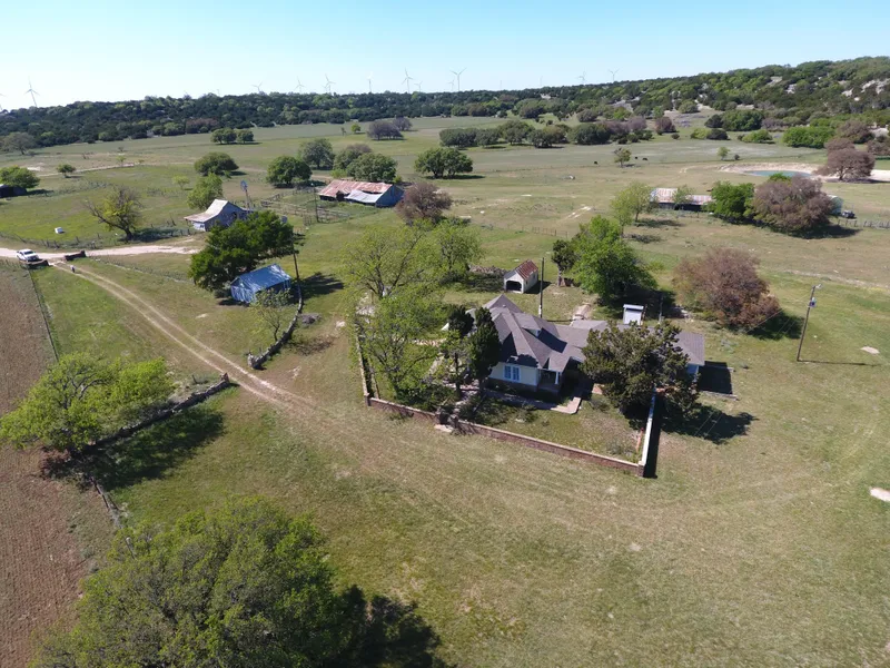 642 +/- acres with hisoric home, cabin and barns located on north side of FM 218. This ranch is the perfect combination wooded hunting areas, native grass, some coastal and cultivated fields. There are 6 stock tanks - 2 are low and the remaining 4 still have good water despite the lack of rain. Fields and pastures are cross fenced to allow for stock rotation. Water well services home and water troughs. Northern part of this ranch is a beautiful tree covered ridge. The views are absolutely stunning in every direction. Tree cover is a mix of live oaks, Spanish oaks, cedar and some mesquite. Deer were seen multiple times while taking pictures. Huge rock outcroppings add to the overall majesty of this mountain top. Elevation is greater than 1,750 feet on mountain top.