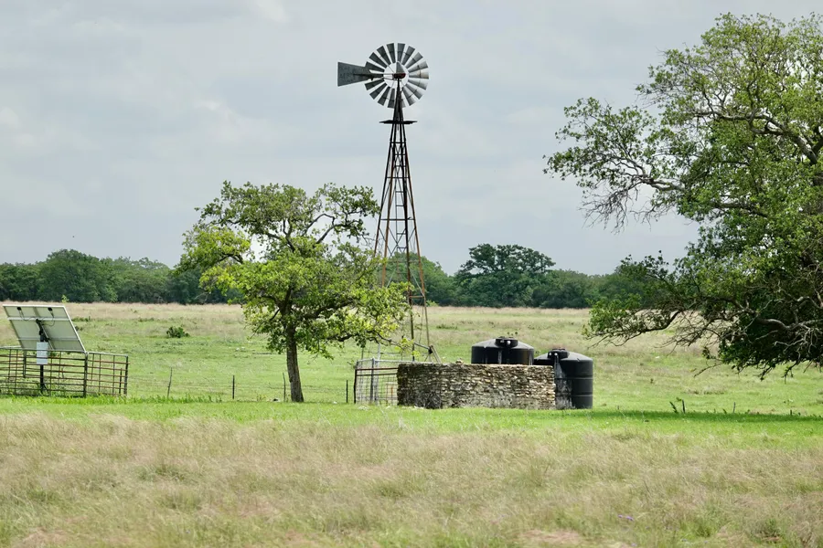 Terrain is rolling with multiple areas offering exceptional views of the surrounding countryside. Tree cover includes a variety of hardwoods including post oaks, shin oaks and live oaks. There are two water wells (one services the home and other used for livestock) and one stock tank. This tank currently has water despite lack of recent rainfall.