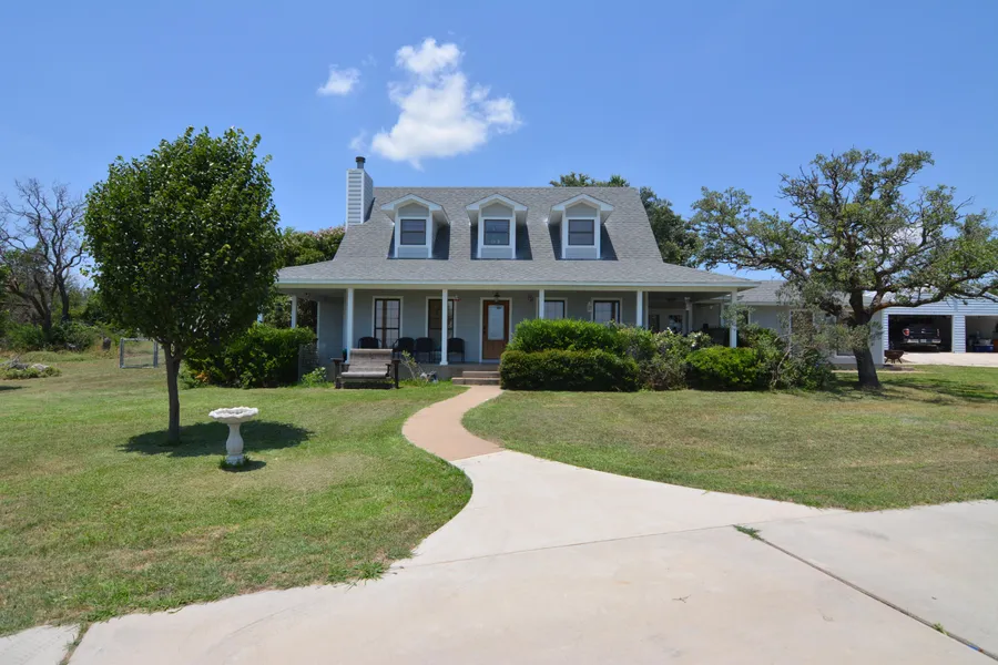 Beautiful two story home located on the outskirts of Goldthwaite city limits on paved FM 572. The home has recently undergone some major improvements including installation of Hardie plank siding on the home and master bath renovation ! The curb appeal of this property is second to none. The circular drive, wrap around porch, amazing hilltop views and tree covered lot make the perfect setting for this gorgeous home.