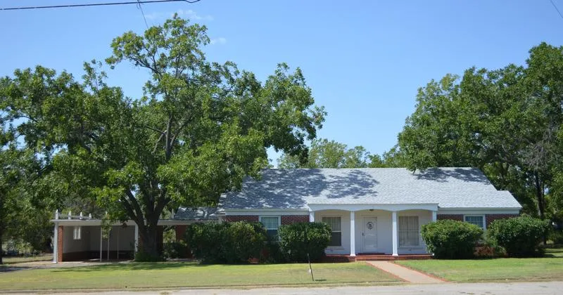 Location! Location! Location! Very close to schools. This red brick mid-century home with a colonial flair, sits on a 1.084 acre lot with large Heritage Hybrid Pecan trees and a sprinkler system. A semi-detached carport sits to the west of the house with a lighted breezeway leading to the home. With 2321 square feet this home consists of 3 bedrooms, 3 baths, 2 living areas, 2 dining areas, and a laundry/ sun room. Custom built cabinets, built in appliances, pantry and small island make up the kitchen. The home also contains storm doors and windows, central heat/air and a new composition roof. Out back is a 16'X 26' storage building with metal roof and cedar lined closet. The back yard offers plenty of shade, making it a great place to relax!