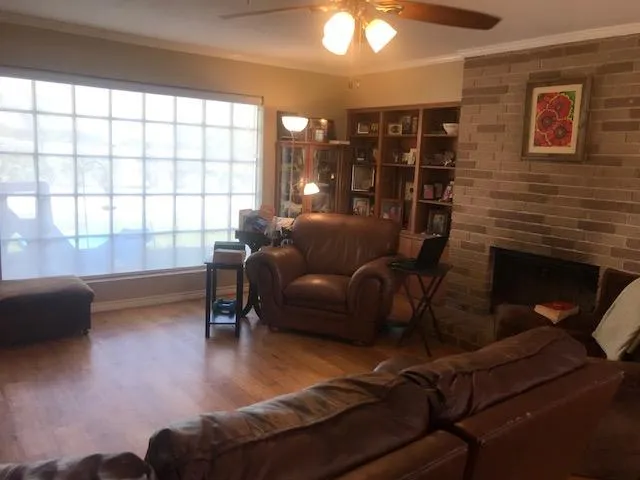 remodeled in 2014; 1,726 sq ft brick home sitting on 7 acres to be surveyed. 3 Bd, 2 bath, open living area with fireplace, built-ins in kitchen, 2 car garage, RV Storage, metal storage building, livestock barns, water well, Postoaks, liveoaks, pecan, mesquite. New fences in 2014. Septic is 4 years old. West fence is NOT property line, West property line will be surveyed to be from northwest corner of existing property running south to the county road and being west of 2 large oak trees. A 12 point and 10 point Bucks were harvested from the back of property the past couple years.