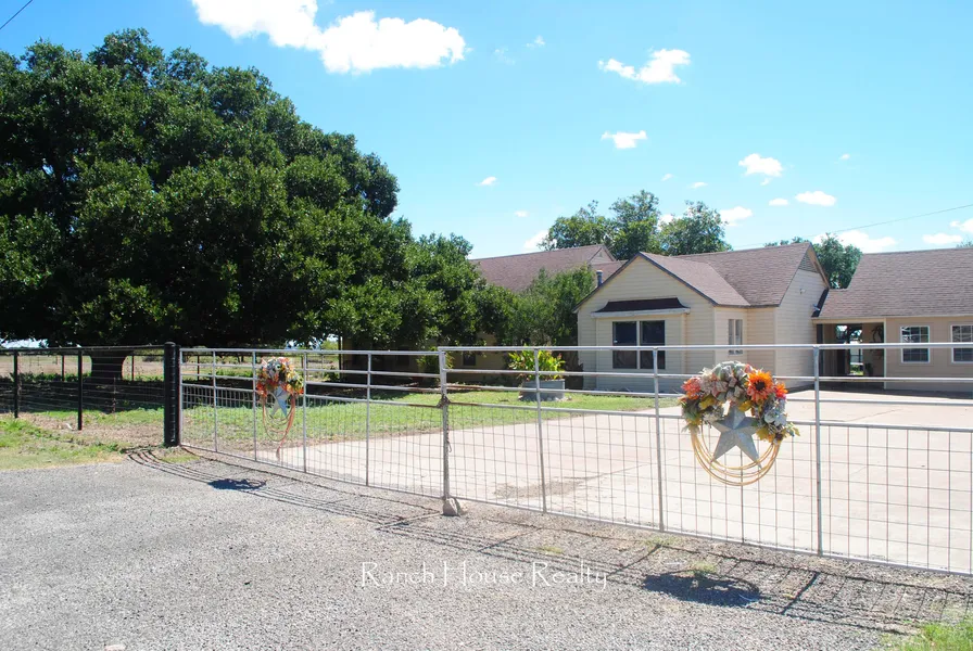 The acreage consists of two fenced pastures with oaks trees and recently planted with winter wheat. One pasture has a shed on concrete and used as a feed/tack room with a run-in shed. Under this shed is cellar. There is also a loft shed with two run-in sheds below. This is a great place for horses, sheep, goats and 4-H and FFA projects. Note, any panels seen in pictures do not convey with the sale of this property.