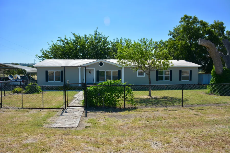Home is located on a small rise toward south end of the property. Per MCAD there is 2,100 sq ft of living area. It is a 4 bedroom, 2 bath with a bonus room that can be used as an office, nursery or guest room. Living area, master bedroom and kitchen all have vaulted ceilings accented by a wooden beam. Living area has patio doors that lead out onto large wooden back deck. This outdoor space is perfect of grilling or just enjoying the country life! Master bath has a garden tub, shower and double sink vanity. Second bath has tub/shower combo with single sink vanity. All bedrooms have carpet and remainder of floor covering is laminate planks. Kitchen boasts an abundance of cabinet and countertop space. Large center island offers seating as well as additional work space. Exterior is virtually maintenance free with metal roof and hardie board siding. Yard is landscaped and fully fenced with chain link fencing. There is a double carport located on north end of the home. Pecan trees surround the home offering shade for these hot Texas summers.