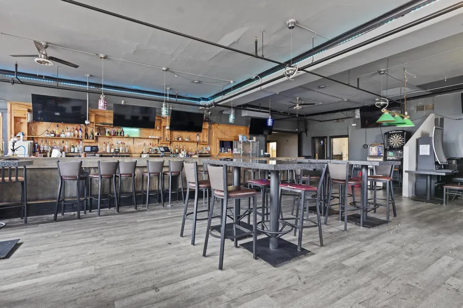 Endless possibilities in a prime location. Perfect for investors or owner operators! High-traffic brick property offering 3 separate addresses with multiple income streams. Main level features a longtime successful bar/lounge with full kitchen, large bar/dining area, and huge performance hall with stage. Upper level offers additional commercial space ready for finishing. Including a great rental hall or business expansion. Third address includes a spacious 2 br apartment for owner-occupancy or rental income. Upgrades include Roof & Sprinkler System. Property also features a full basement, central air, 4 car garage, and includes furniture, coolers & grills.