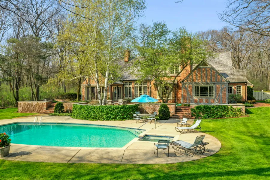 Never before available River Hills estate set on a gorgeous, secluded wooded lot at the end of River Rd. This inviting brick home features a large living room with expansive windows, gracious dining room, a beautiful sunroom, bright family room and main floor primary suite. Abundant character throughout with wood-beamed ceilings, several fireplaces and charming built-in cabinetry. Enjoy summer in your private backyard oasis with a sprawling terrace, beautiful landscaping and an in-ground pool with hot tub. All situated on almost 5 acres of land this is a remarkable opportunity to enjoy privacy and nature yet be close to shopping, schools and all that the North Shore has to offer. (Some photos have been virtually staged/enhanced.)
