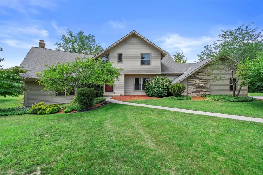 Stunning 5-bedroom, 3.5-bath contemporary home in the heart of River Hills, offering 3,854 sq ft of luxurious living space. This beautifully designed home features vaulted ceilings, hardwood floors, and an abundance of windows that flood the space with natural light. The chef's kitchen boasts granite countertops, hardwood cabinets, and stainless steel appliances, perfect for entertaining. The oversized master suite includes a spa-like ensuite with dual sinks, a large walk-in shower, and a soaking tub. Set on a serene, park-like lot and just minutes from premier golf courses, country clubs, and local amenities, this home offers elegance, space, and tranquility.